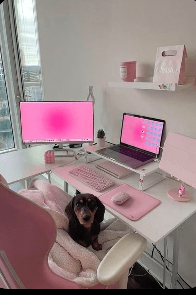 This kind of resembles my office minus the sausage dog – I’ll tidy mine and do a office tour.